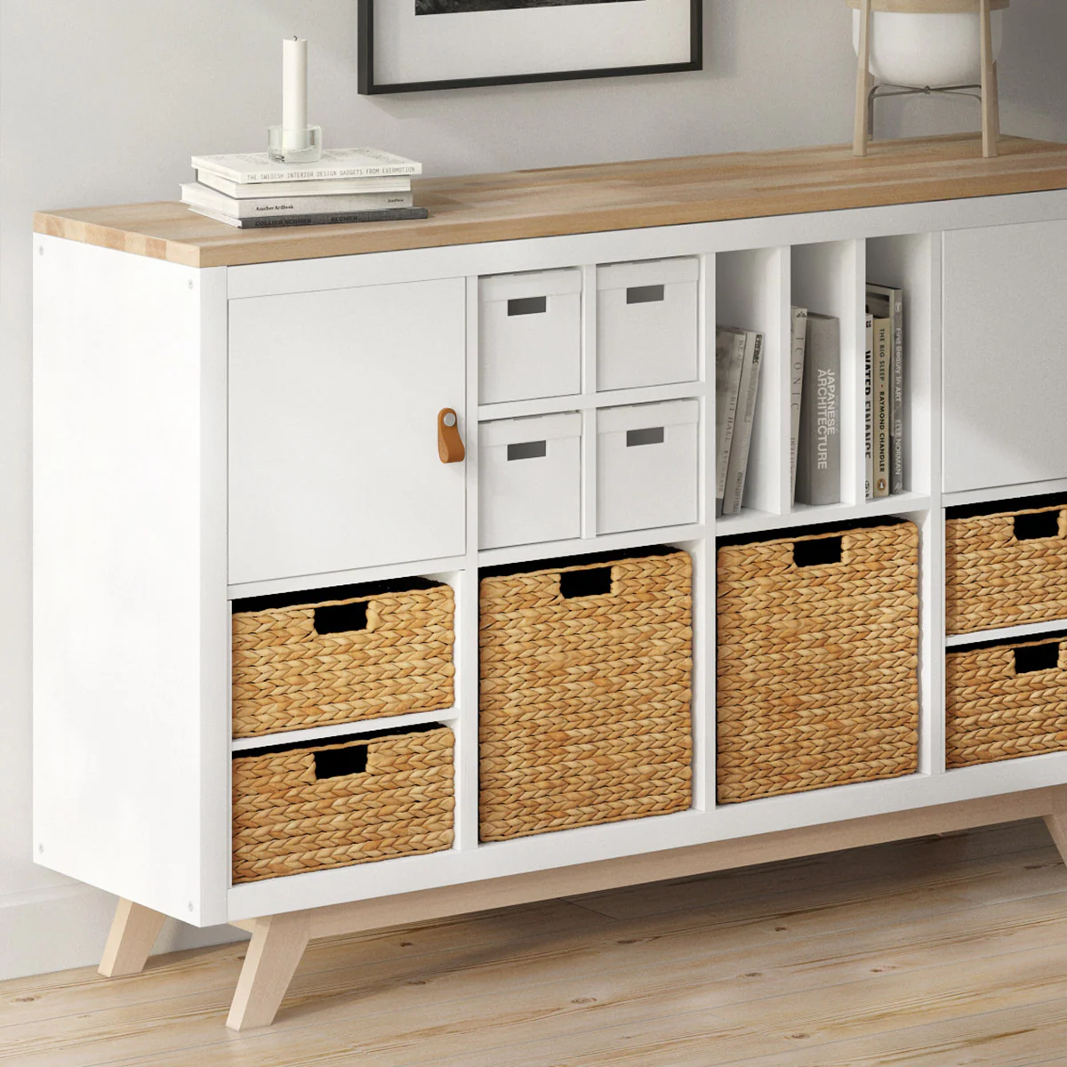 Das beliebte IKEA Regal bietet vielfältige Möglichkeiten. Verwende es zum Beispiel als großes Highboard im Wohnzimmer mit extra Stauraum. Kombiniere Einsätze, clevere Aufbewahrungsboxen und stabile Möbelfüße.